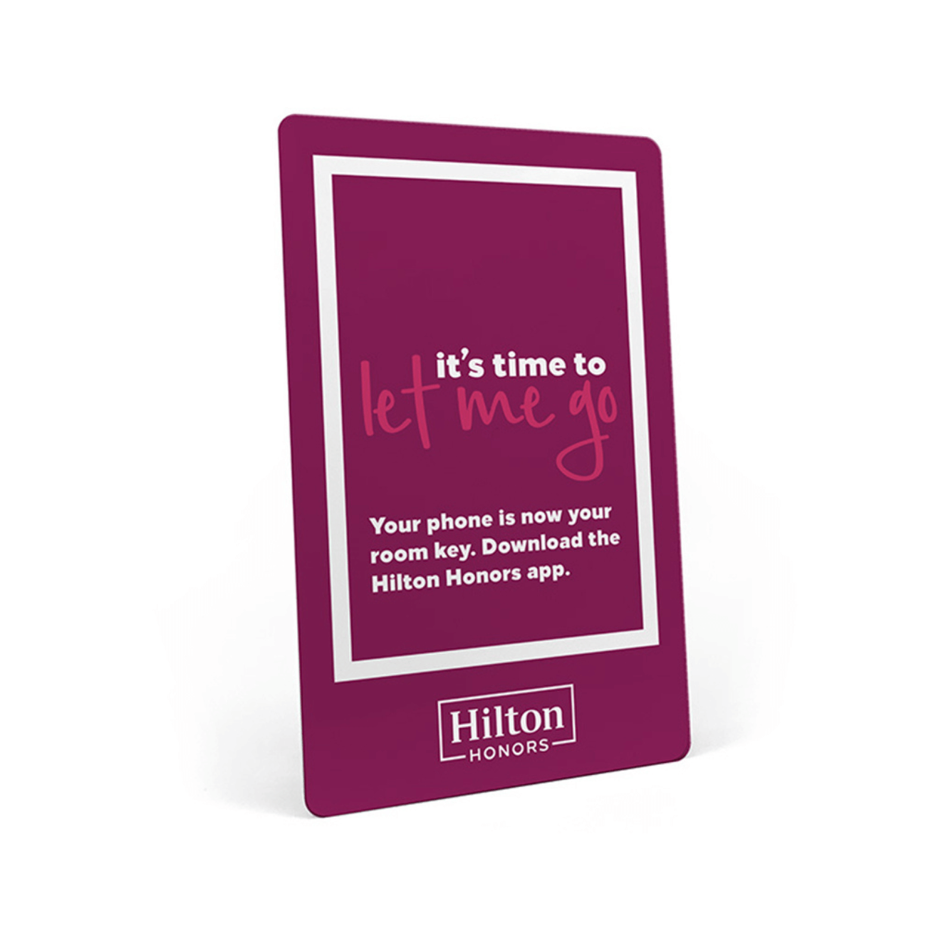 La tarjeta RFID Hilton Honors Let Me Go es una tarjeta premium con la marca oficial, utilizada en todos los hoteles y resorts Hilton. Con el llamativo diseño morado “Let Me Go” de Hilton Honors, ofrece una experiencia fluida y consistente con la marca desde el momento del check-in.